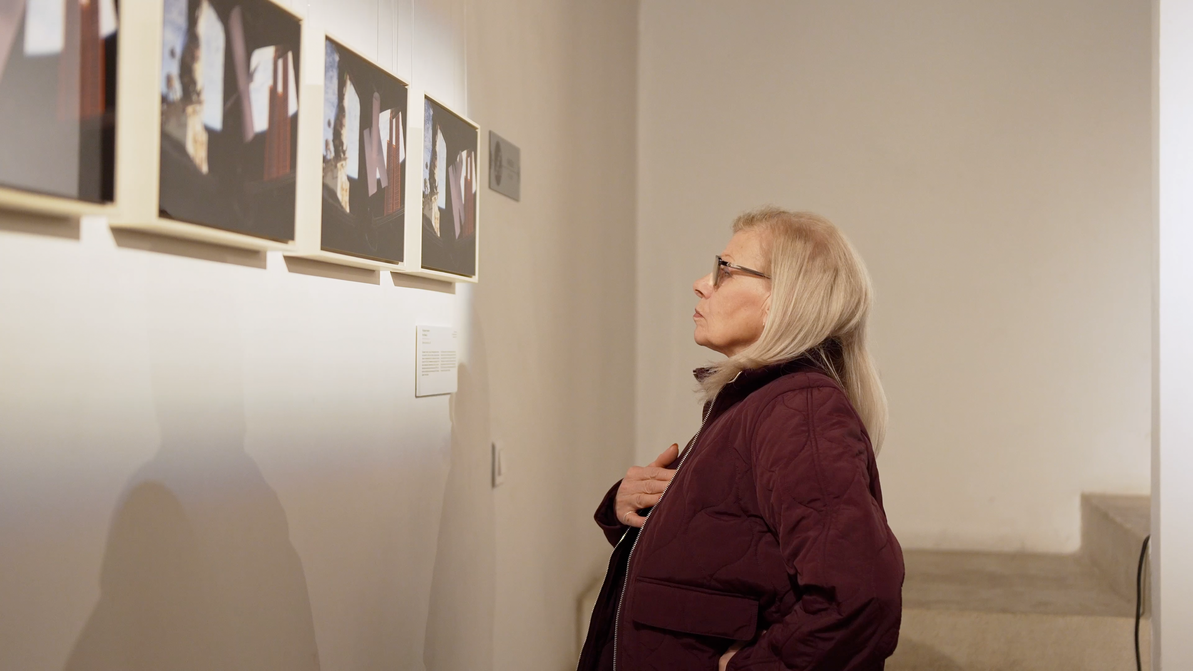 Exhibition view featuring Eduardo Kac's Inner Telescope (the five-image sequence on the bottom right), as part of the “Moon Bound” exhibition, Bishop’s Basilica, Plovdiv, Bulgaria, February 23- March 15, 2026.